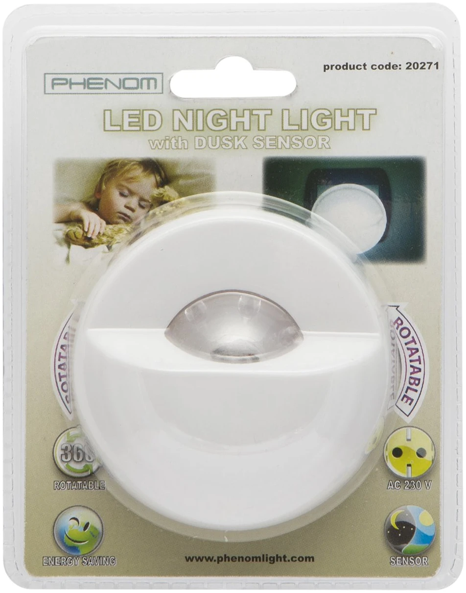 Deze Phenom LED nachtlamp is een praktisch accessoire voor kinderkamers of slaapkamers. Je kindje krijgt een veilig gevoel doordat er een lichtje aanwezig is. Het PHENOM nachtlampje is een geweldige oplossing voor kinderen of volwassenen die meerdere keren per nacht bang zijn of wakker worden in het donker.