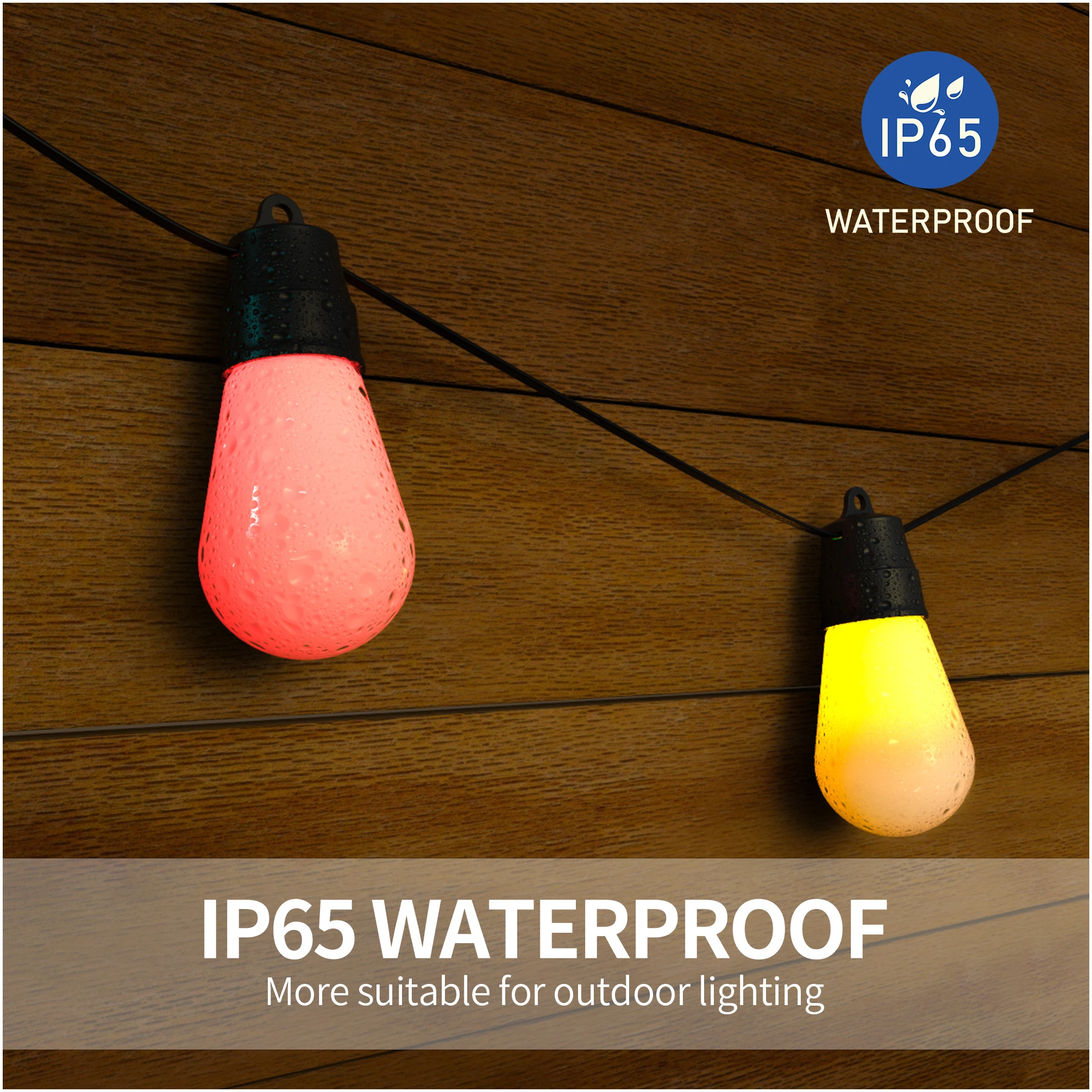- Waterdichtheid lichtsnoer: IP65