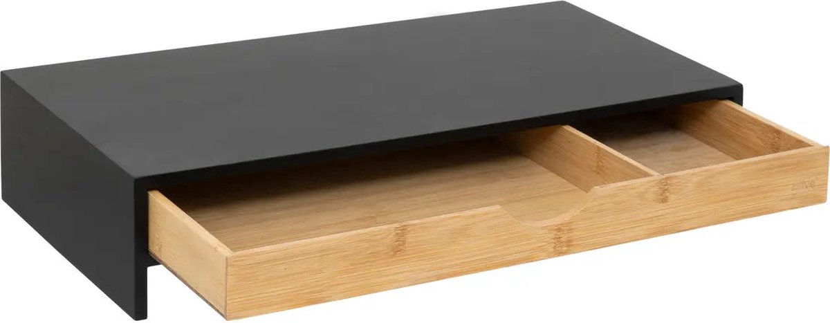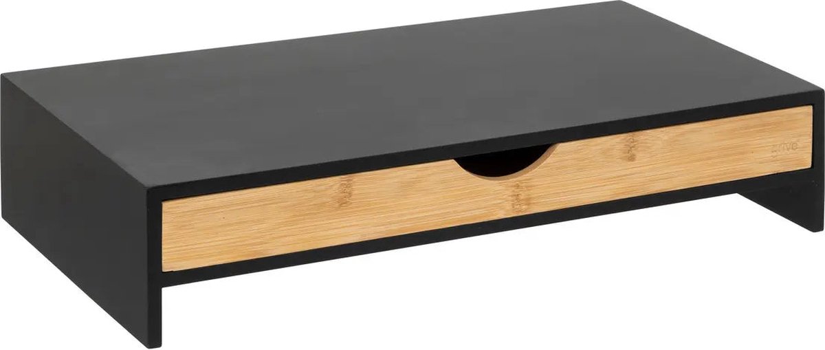 Computermonitorstandaard met laden 2 compartimenten: een groot A4-compartiment + een kleiner compartiment voor muis, pennen, Post-It notities, enz. Onderste ruimte ideaal voor het opbergen van een toetsenbord