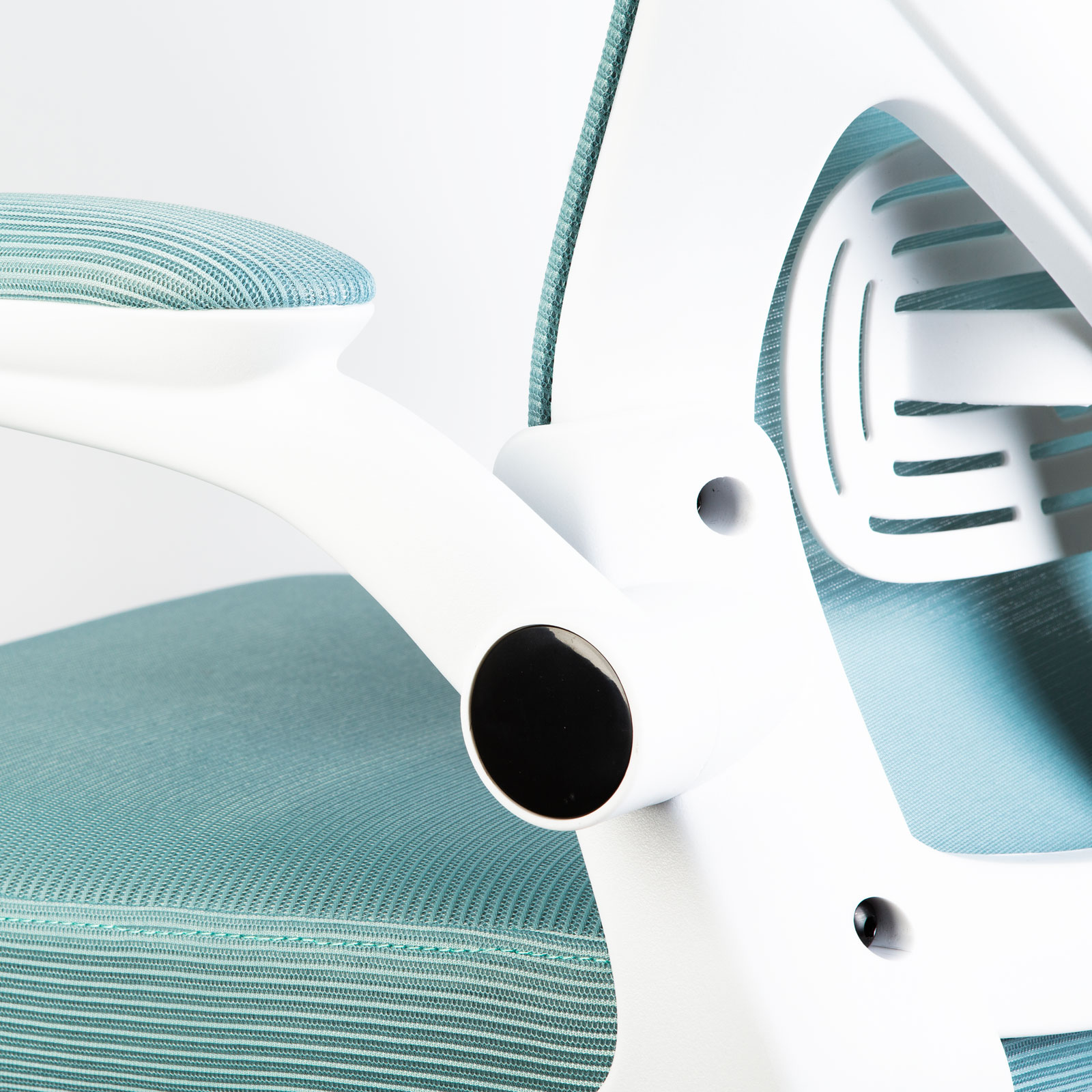 Moderne, comfortabele bureaustoel in wit/blauw, ideaal voor thuis of op kantoor. Dankzij het ergonomische ontwerp en de verstelbare hoogte biedt hij comfortabel zitten, zelfs tijdens lange sessies. De rugleuning en armleuningen zijn gemaakt van sterk maar flexibel materiaal, terwijl de zitting is gemaakt van duurzaam multiplex. Voor extra gemak kunnen de armleuningen worden opgeklapt. De stoel is voorzien van een vlindermechanisme, gaslift, een stevige kunststof kruisvoet en duurzame wielen die stabiliteit en duurzaamheid garanderen.