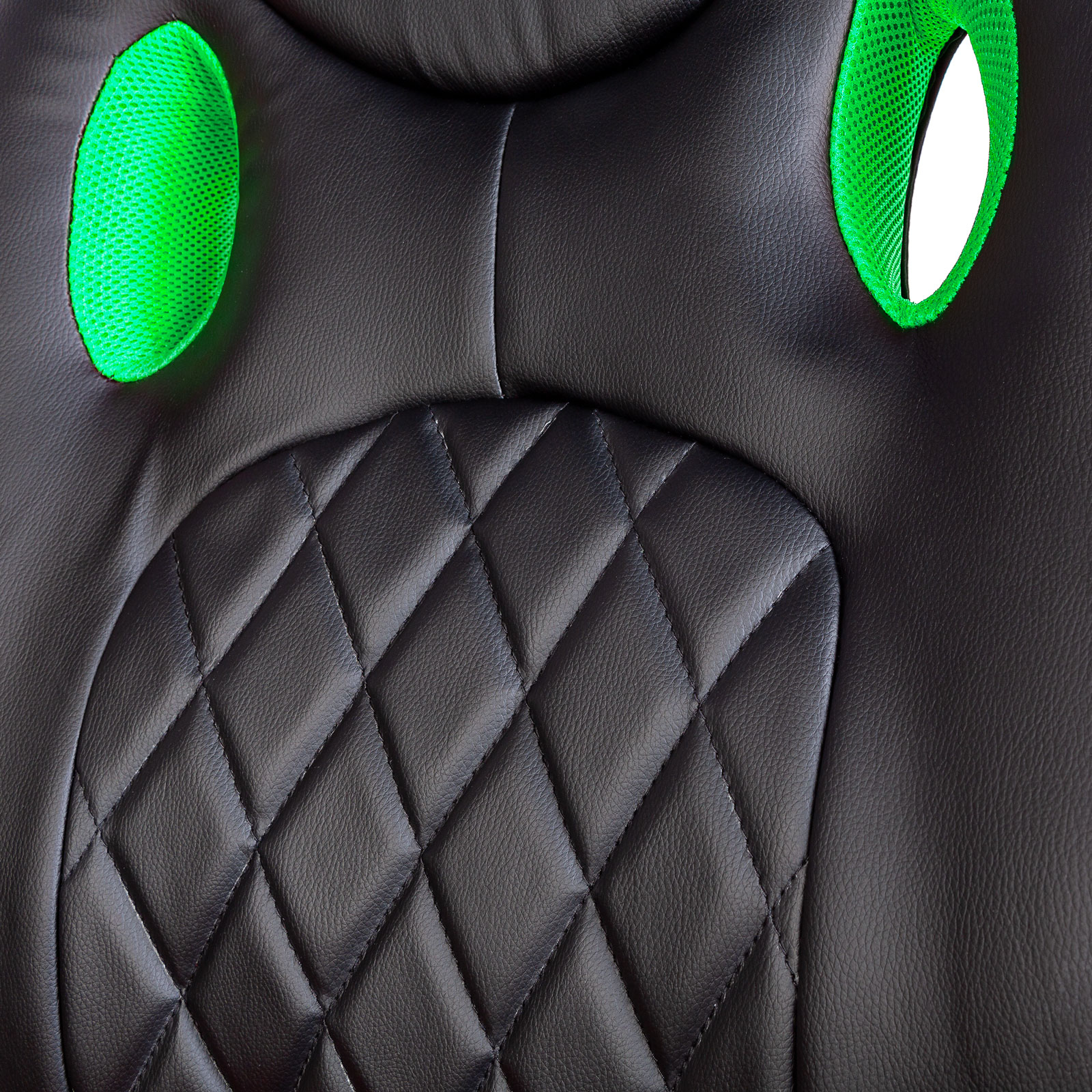 Maximaal gewicht: 110 kg zitvlak Zitgrootte: 53 x 47 cm Rugleuning maat: 71 x 53 cm Breedte armleuning: 6,5 cm Hoogte armleuning: 25 cm Hoogtebereik: 45 – 55 cm Kleur: 2-kleurig ontwerp (zwart/groen)