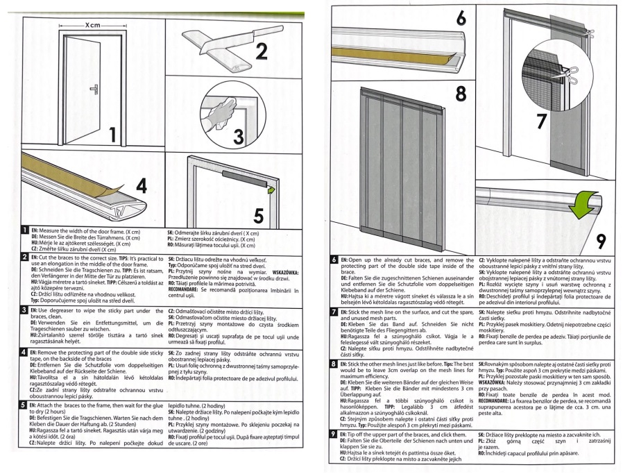 - De zelfklevende kunststof strip vouwt u eenvoudig open en bevestigd u boven in het deurkozijn (na schoonmaken oppervlak)