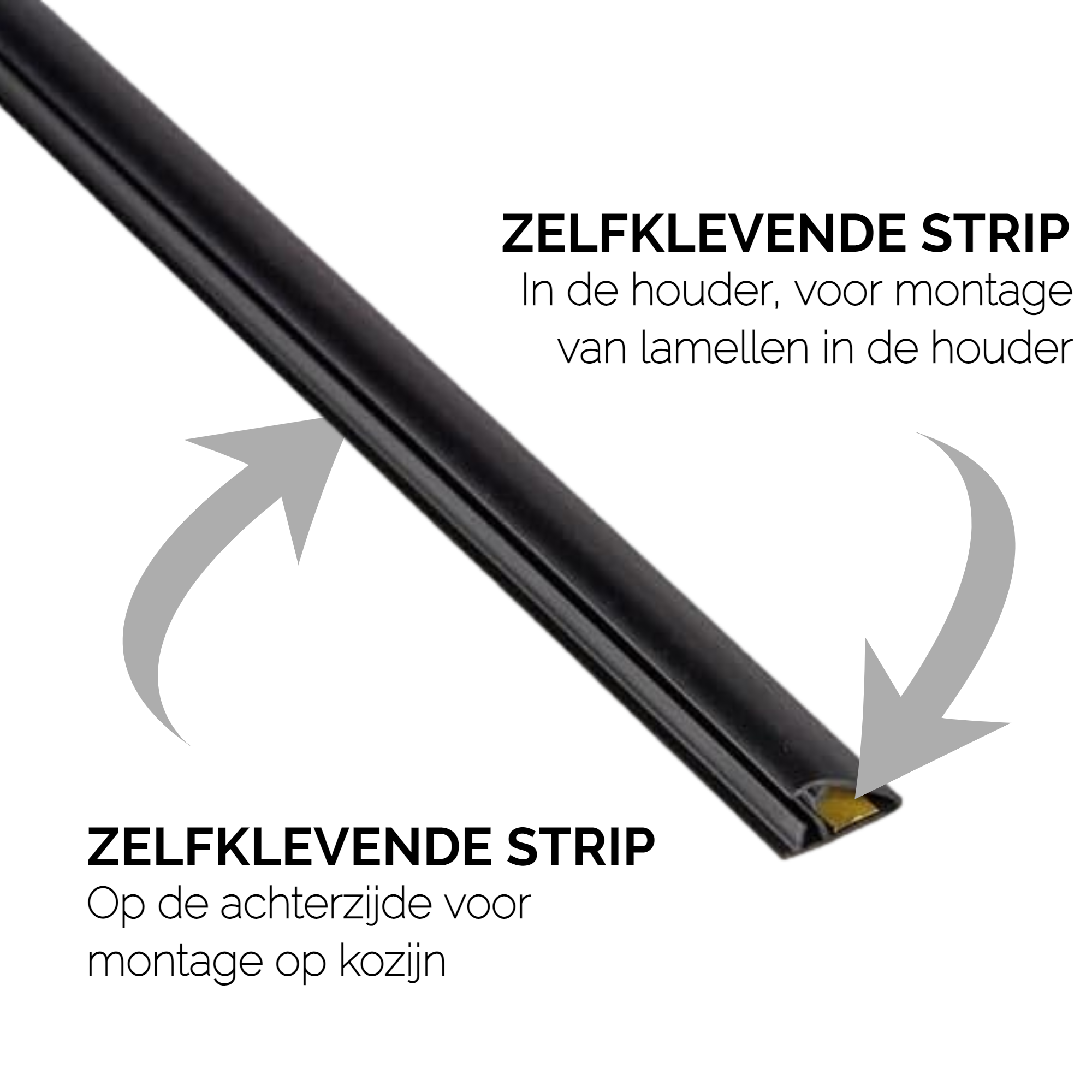 - Aan de onderkant van de lamellen zitten kunstof strips die zorgen voor de verticale spanning van de hor.