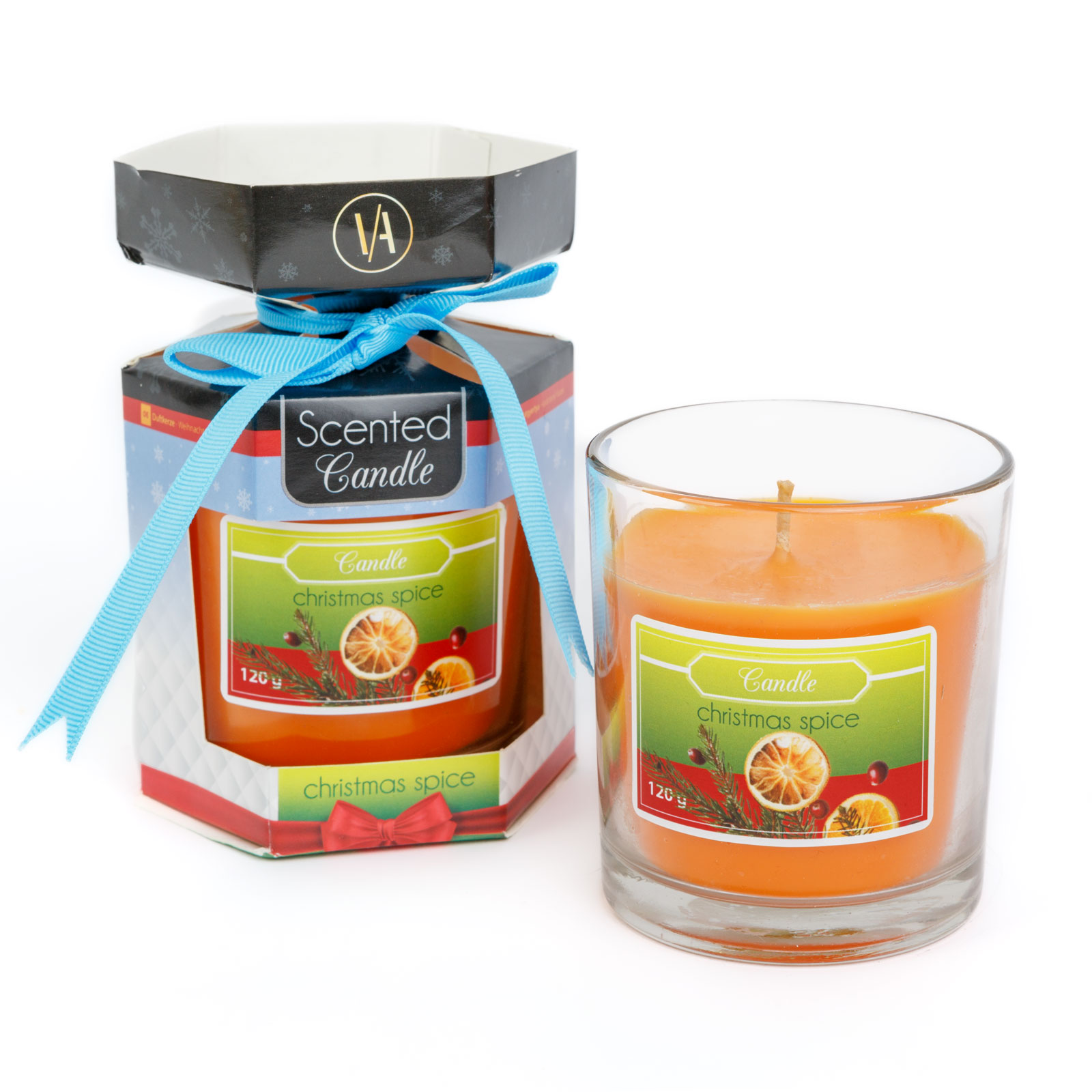 Geur: “Kerstkruiden” Laadgewicht: 120 gram Smeltpunt: >45°C Vlampunt: >150°C Brandduur: max. 25 uur Kleur: Oranje Materiaal beker: Glas Cupmaat: Ø70 x 78 mm Ingesteld gewicht: ~300 gram UFI: T98A-8XCA-2H0C-QF46
