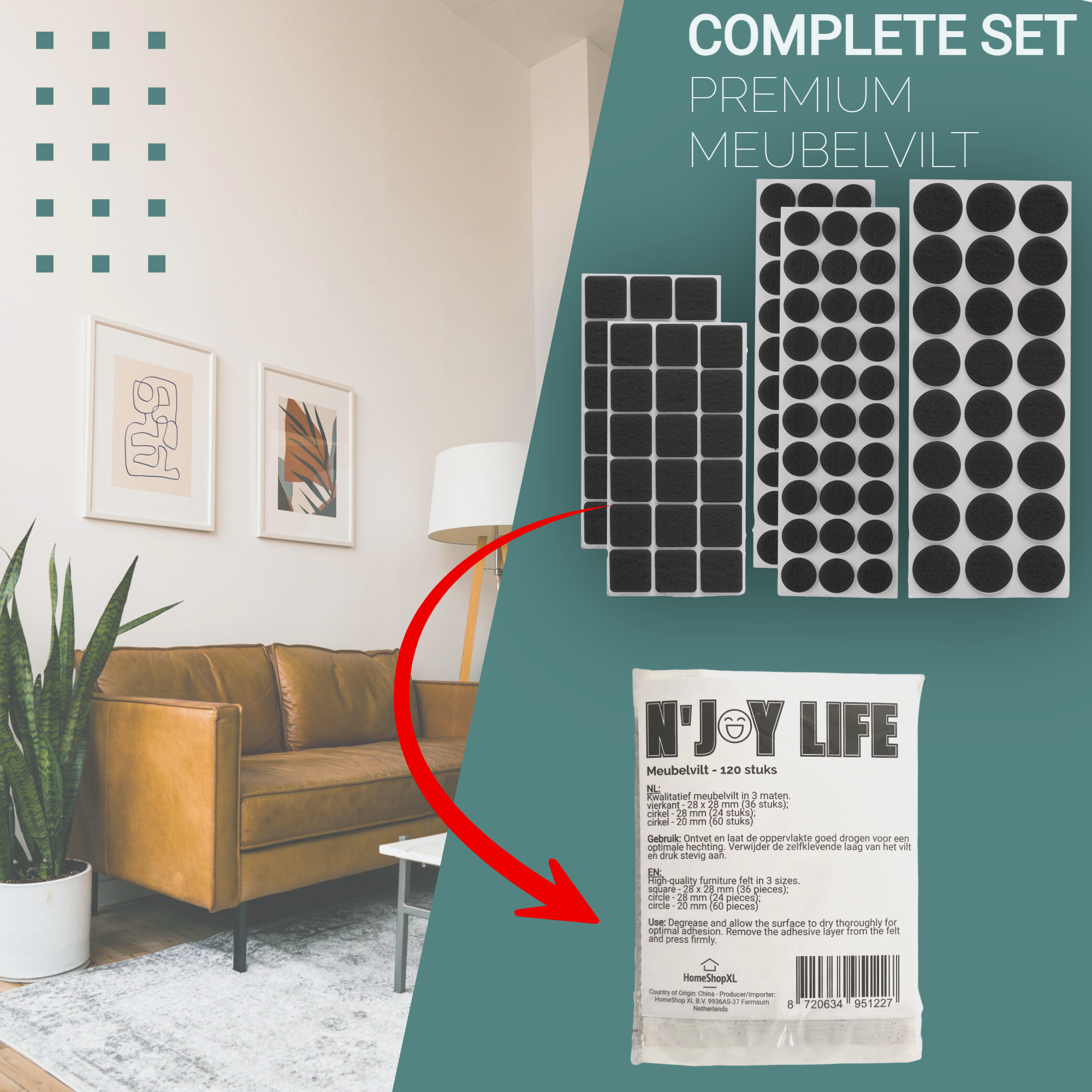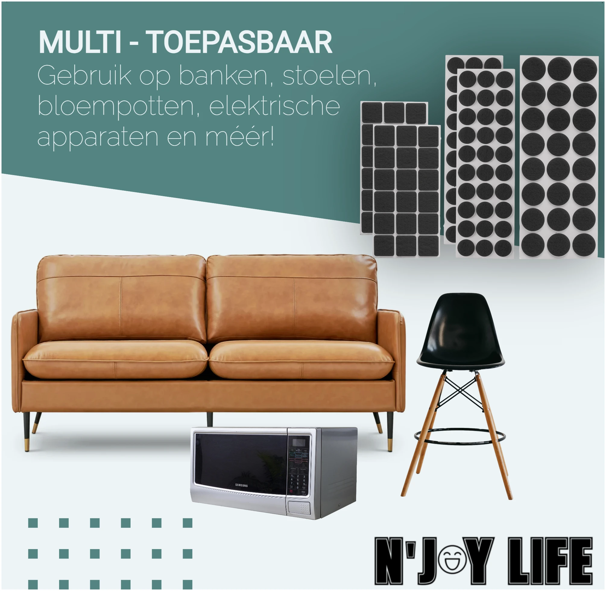 Afbeelding van 120x N'JOY LIFE Premium Viltjes Stoelpoten - Zwart - Zelfklevend Anti Kras Meubelvilt voor Meubels - 120