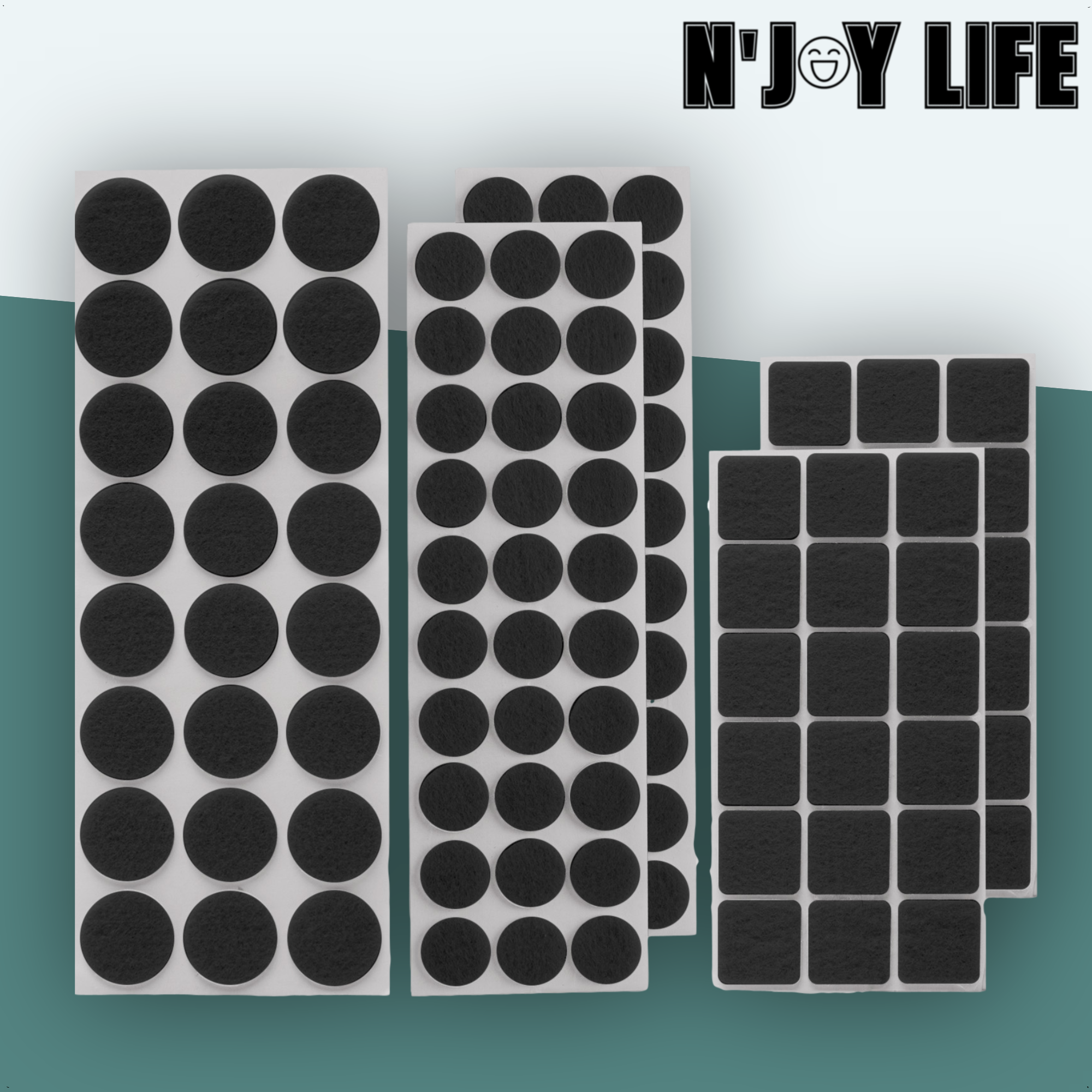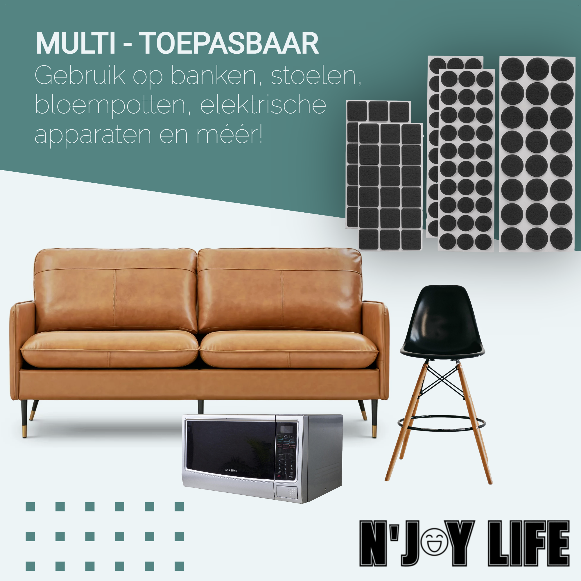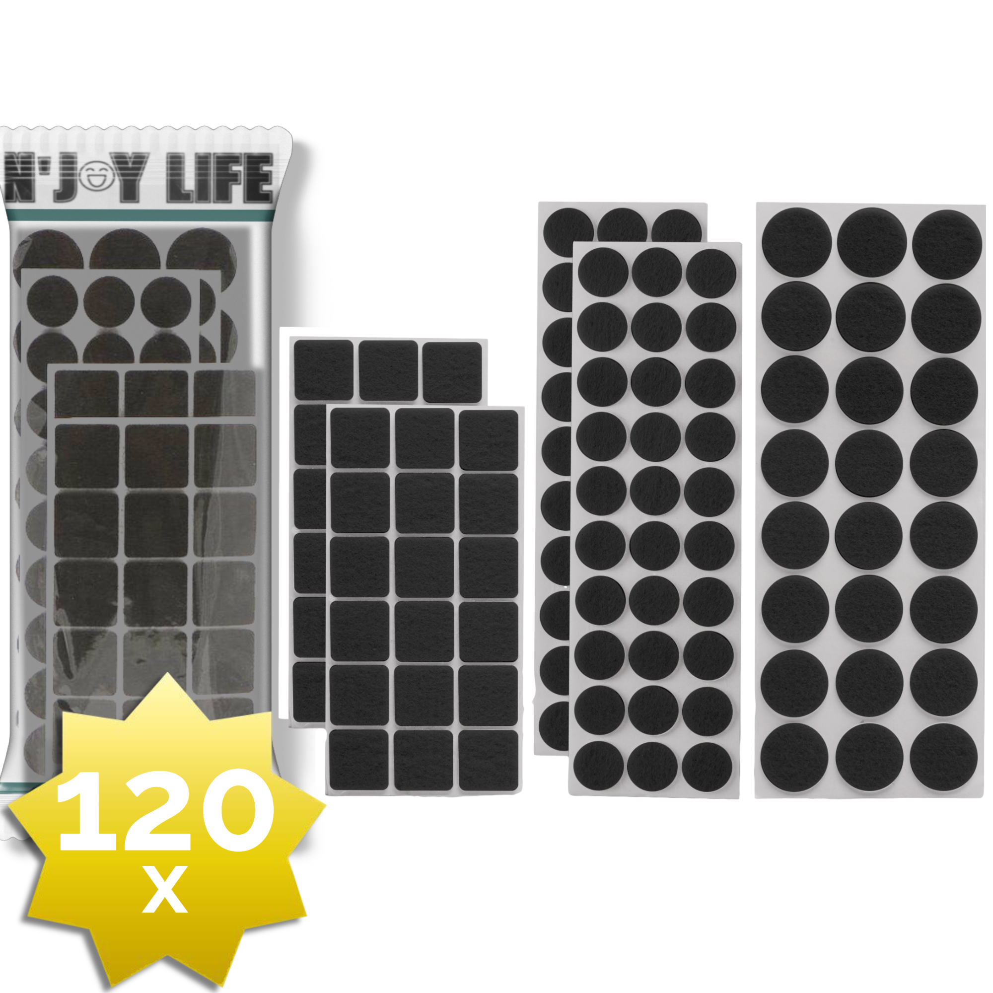120x N'JOY LIFE Premium Viltjes Stoelpoten – Zwart – Zelfklevend Anti Kras Meubelvilt voor Meubels – 120 stuks – Rond en Vierkant – Zelfklevende Stoelpoot Beschermers – Meubelglijders Antikras Vilt voor Stoel – Bank – Tafel – Elektrische Apparatuur – BPK