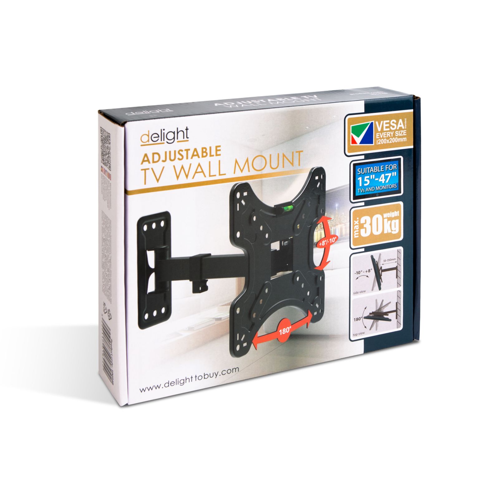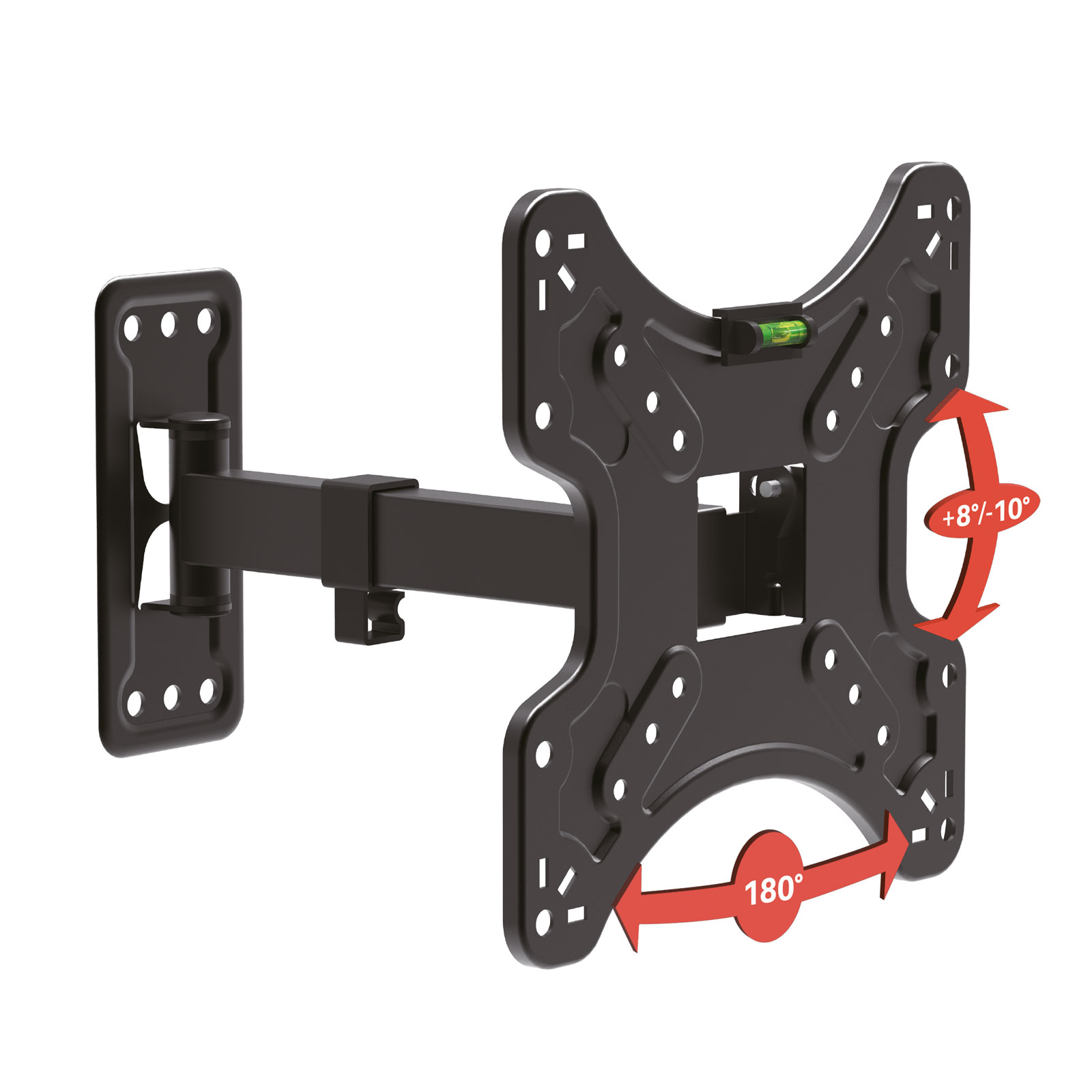 Montageoppervlak: VESA 75×75, 100×100 en 200×200 mm Ontwerp: met arm Maximale verticale kanteling: 8° omhoog / 10° omlaag Maximale horizontale draaiing: 90° links, 90° rechts Maximale belastbaarheid: 30 kg Min./max. muurafstand: 55 – 250 mm Kleur: zwart Accessoires: schroeven, pluggen