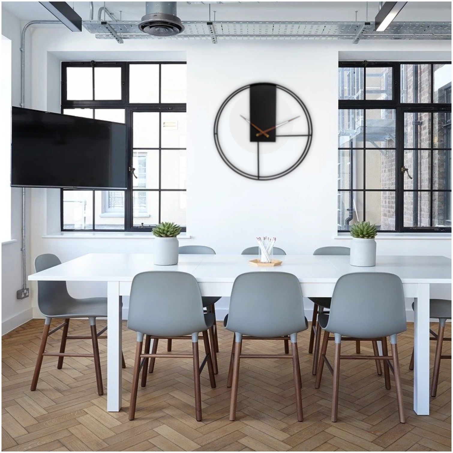 Op zoek naar een stijlvolle wandklok? Dit prachtige exemplaar van HomeShopXL is een uniek model en combineert een modern en minimalistisch design. Het frame is volledig uit metaal vervaardigd. De wijzers zijn van hout.