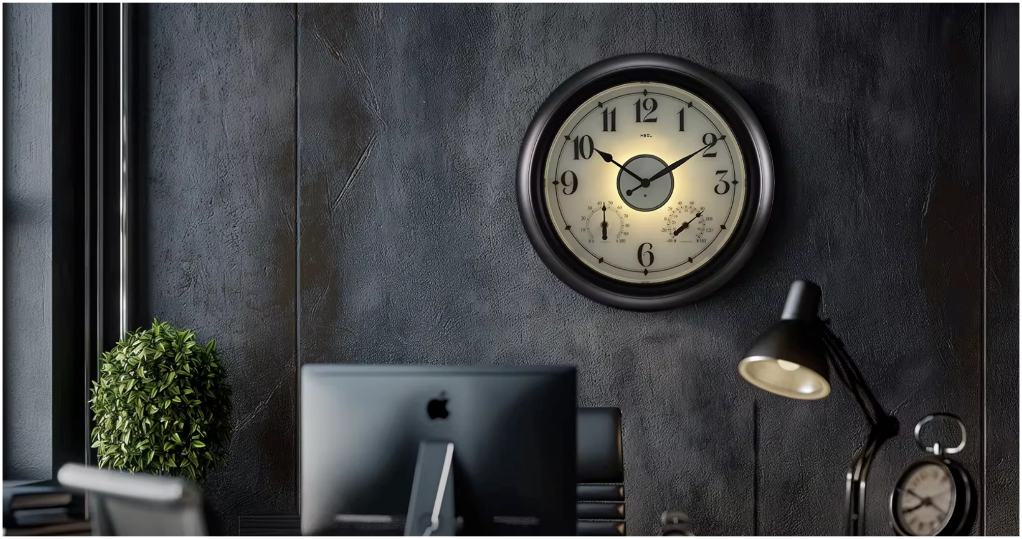 De klok is voorzien van een slimme lichtsensor, waardoor de verlichting automatisch inschakelt bij schemering. Zo blijft de tijd altijd duidelijk zichtbaar, zelfs in het donker.