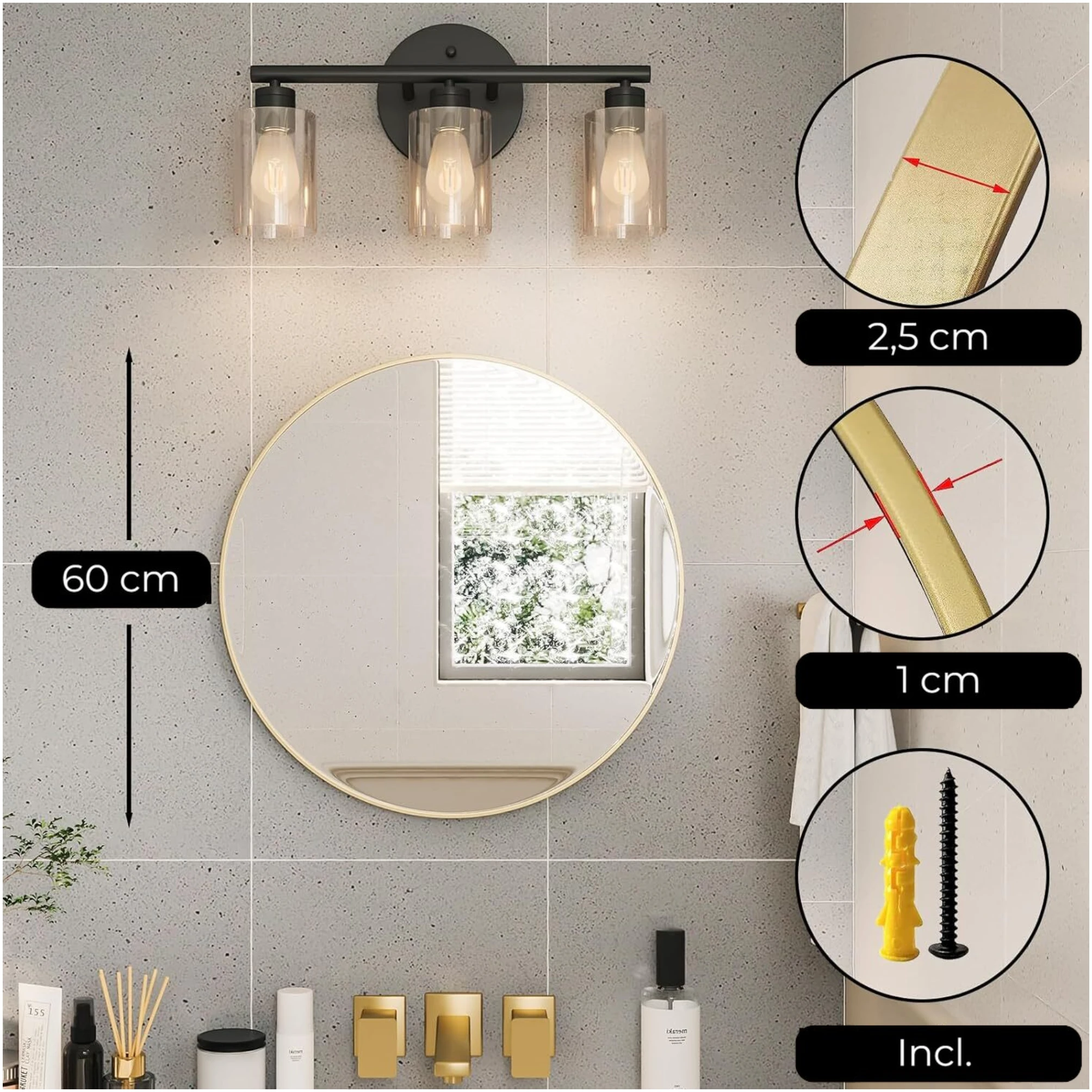 Spiegel in elke ruimte: veelzijdig en praktisch – Of je nu een spiegel zoekt voor in de badkamer, slaapkamer, woonkamer of toilet, de HSXL Wandspiegel 60cm goud past overal perfect bij. Met zijn veelzijdigheid en praktische formaat is deze spiegel een ideale keuze voor elke ruimte in huis.