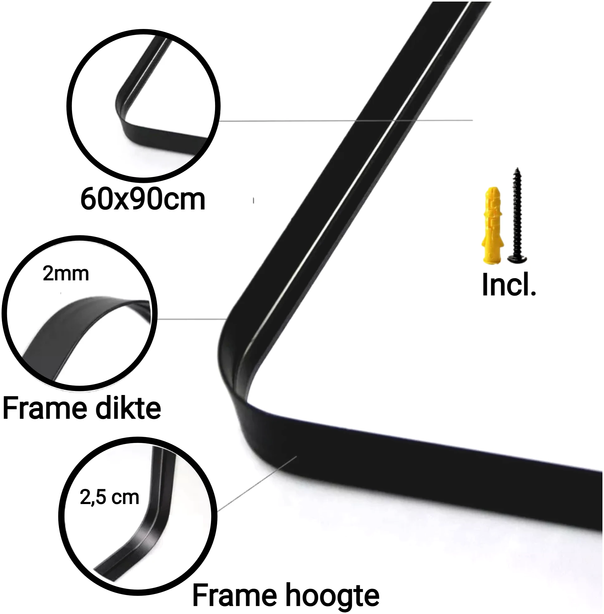 -Makkelijk ophangen (2 ophangpunten) Schroeven en pluggen meegeleverd
