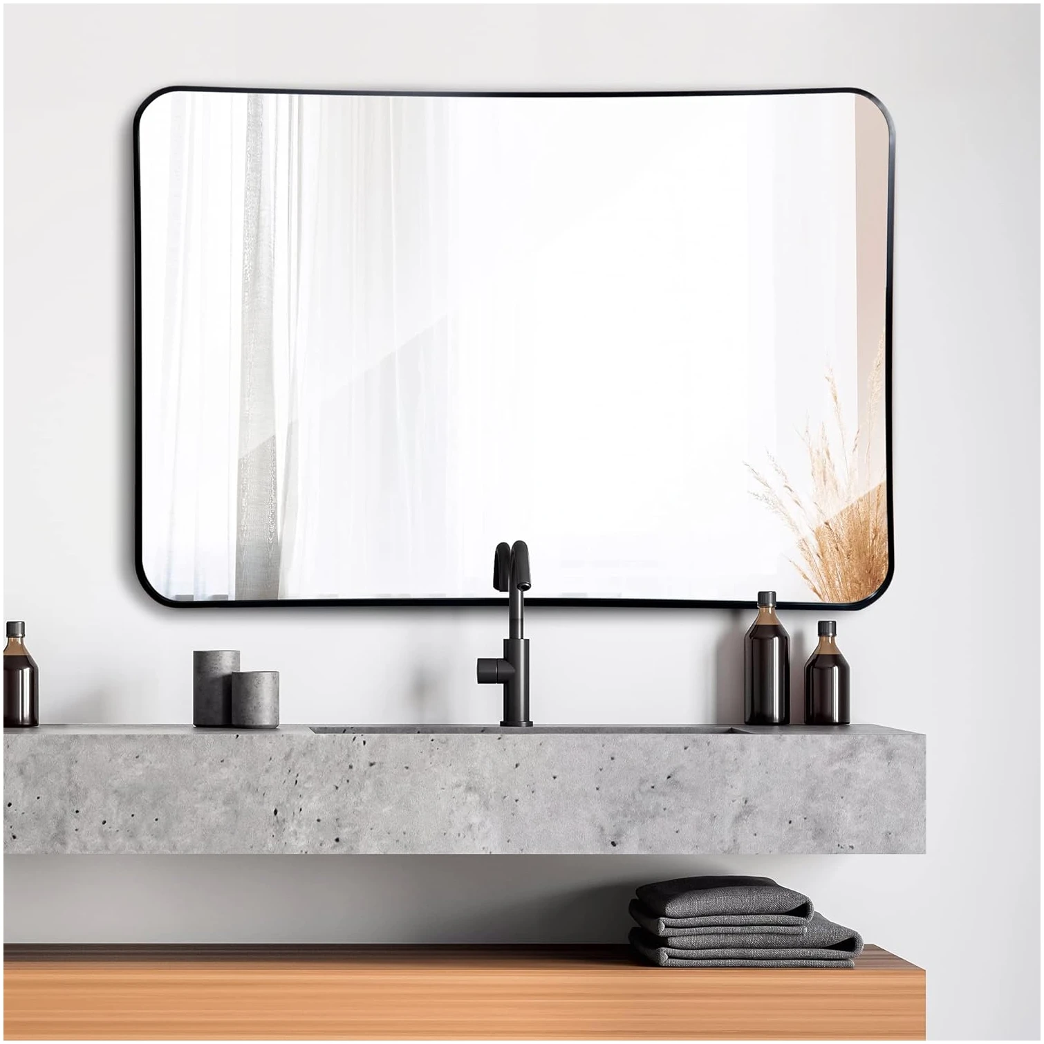 Krasvrije spiegel: Langdurige helderheid en glans – De HSXL Wandspiegel 60x90cm Zwart is gemaakt van hoogwaardig materiaal waardoor hij krasbestendig is. Dit betekent dat je jarenlang kunt genieten van een heldere en glanzende spiegel, zonder enige vorm van beschadiging.