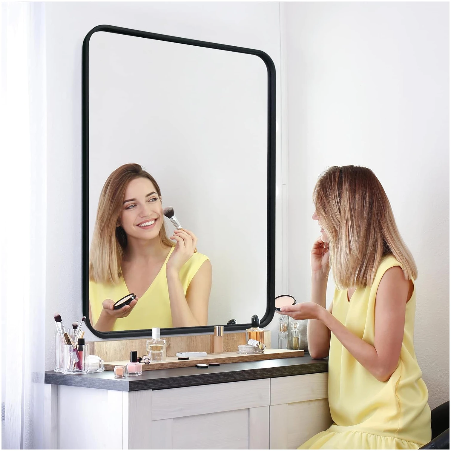 Spiegel in elke ruimte: veelzijdig en praktisch – Of je nu een spiegel zoekt voor in de badkamer, slaapkamer, woonkamer of toilet, de HSXL Wandspiegel 60x90cm Zwart past overal perfect bij. Met zijn veelzijdigheid en praktische formaat is deze spiegel een ideale keuze voor elke ruimte in huis.